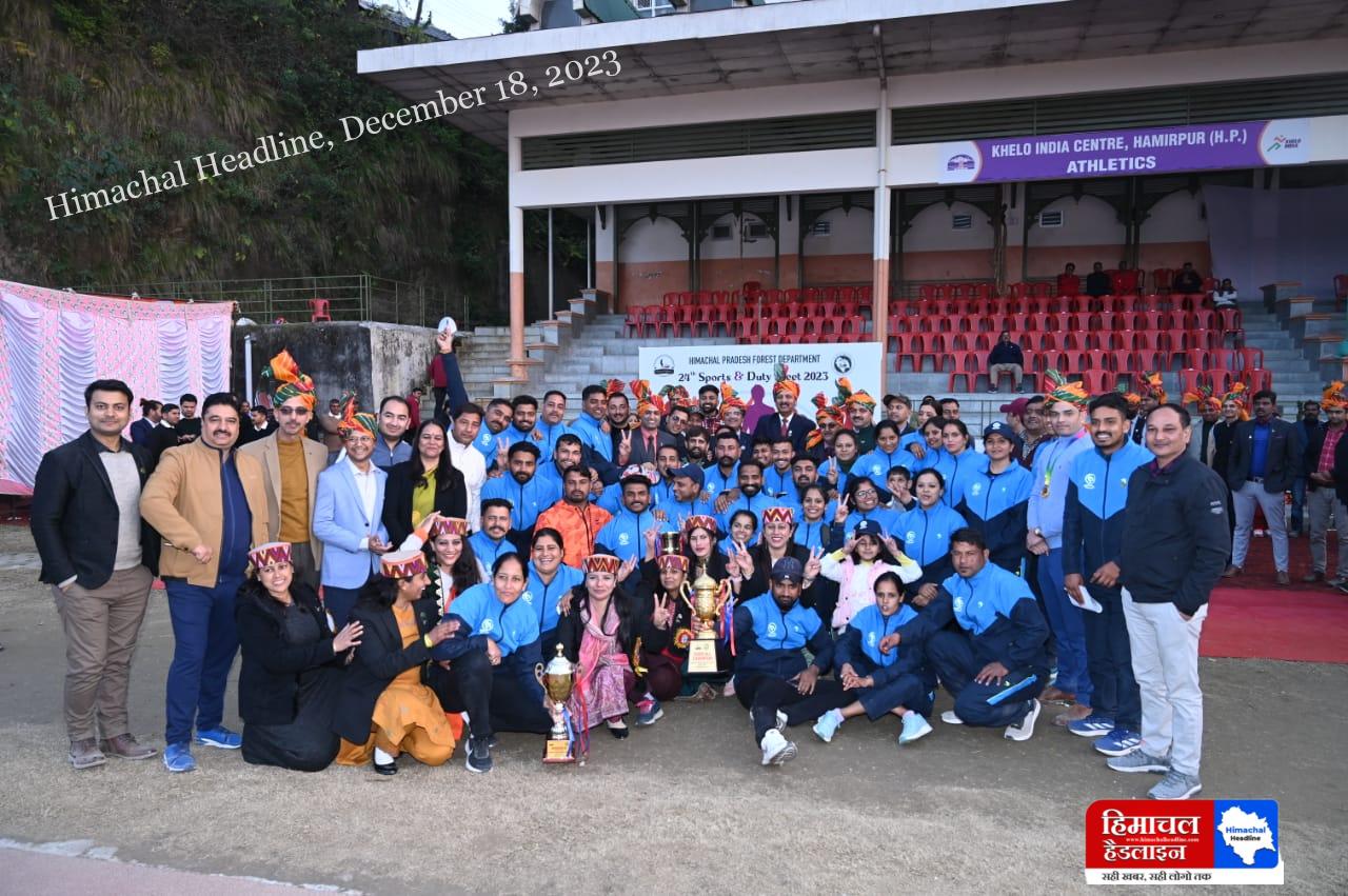 24वीं वन खेलकूद एवं डयूटी प्रतियोगिता रविवार को यहां अणु के खेल परिसर में संपन्न हो गई। इस तीन दिवसीय प्रतियोगिता में वन विभाग की सभी 10 वृतों, वन्य प्राणी विंग, निदेशालय और हिमाचल प्रदेश राज्य वन विकास निगम सहित कुल 13 टीमों के लगभग 700 महिला एवं पुरुष खिलाड़ियों ने विभिन्न स्पर्धाओं मंे भाग लिया। इस प्रतियोगिता में वन वृत हमीरपुर की टीम ने कुल मिलाकर 121 अंक हासिल करके ओवरऑल खिताब पर कब्जा कर लिया।