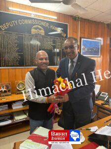 इस अवसर पर अजय शर्मा ने हमीरपुर में प्रस्तावित नई सब्जी मंडी के लिए भूमि हस्तांतरण की प्रक्रिया और एपीएमसी से संबंधित अन्य मुद्दों पर भी उपायुक्त के साथ चर्चा की। उन्होंने कहा कि नवनियुक्त उपायुक्त का प्रशासनिक सेवा में बहुत लंबा अनुभव रहा है और जिला हमीरपुर को उनकी सेवाओं का भरपूर लाभ मिलेगा।