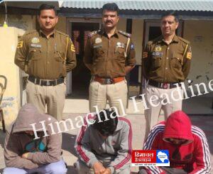 जिला पुलिस हमीरपुर पिछले काफी लंबे समय से नशेड़ियों व नशा माफिया पर लगातार शिकंजा कसती नजार आ रही है। इसी कड़ी में बीते रोज पुलिस थाना हमीरपुर की टीम ने रजनीश कुमार पुत्र पृथी चंद , निवासी मार्फत गर्ग निवास न्यू माडल टाउन,होशियारपुर,पंजाब, सुनील कुमार पुत्र सुभाष चंद निवासी गांव घरियाणा, डाकघर चौकी जम्वालां, तहसील तथा जिला हमीरपुर व विशाल पुत्र राजपाल निवासी मकान नं०15, गांव अणु खुर्द डाकघर , तहसील व जिला हमीरपुर से 10.67 ग्राम चिट्टा बरामद करने में सफलता हासिल की है। पुलिस ने मामला दर्ज कर आगामी कार्रवाई शुरू कर दी है।
