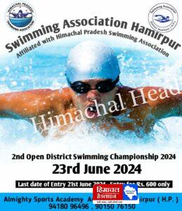 चैंपियनशिप में बतौर ऑब्जर्वर हिमाचल प्रदेश स्विमिंग एसोसिएशन के राज्य महासचिव इशान अख्तर विशेष रूप से करेंगे शिरकत ।