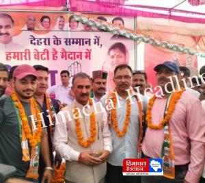 इस दौरान देहरा विधानसभा क्षेत्र के चुनाव प्रभारी व कृषि मंत्री चौधरी चंद्र कुमार, गगरेट से विधायक राकेश कालिया, कांगड़ा जिलाध्यक्ष करण सिंह पठानिया, पूर्व विधायक योगराज, चेयरमैन हिमाचल प्रदेश भवन एवं सन्निर्माण कामगार बोर्ड नरदेव कंवर, जसवां परागपुर से पूर्व उम्मीदवार सुरेंद्र मनकोटिया, ब्लॉक अध्यक्ष पुष्पिंदर ठाकुर, विक्रम शर्मा डिक्की, राजेंद्र शर्मा, निशांत शर्मा इत्यादि मौजूद रहे।