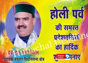 बड़सर विधानसभा क्षेत्र के विधायक इंद्र दत्त लखनपाल की ओर से समस्त प्रदेश और देश वासियों को होली की हार्दिक शुभकामनाएं एवं बधाई