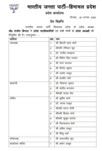 हिमाचल प्रदेश में भाजपा की प्रदेश कार्यकारिणी घोषित, हमीरपुर ज़िला से सम्बंधित राज्यसभा सांसद सिकंदर बने प्रदेश महामंत्री तो प्रदेश युवा मोर्चा की कमान हमीरपुर के सन्नी शुक्ला को बनाया गया