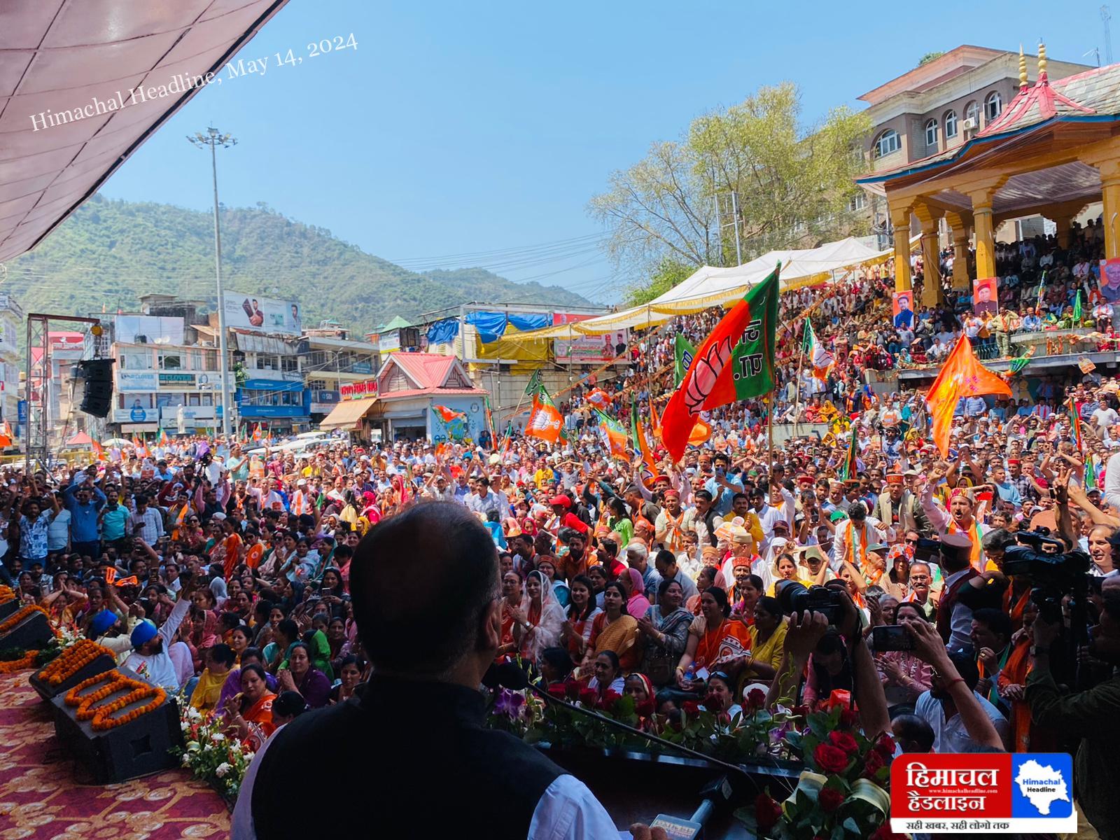 मंडी के सेरी मंच पर भाजपा की नामांकन रैली में गरजे पूर्व मुख्यमंत्री जयराम ठाकुर