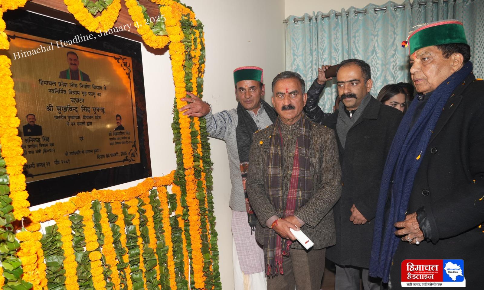 प्रदेश सरकार ढली-नारकंडा सड़क को फोर लेन बनाने के लिए प्रयासरतः मुख्यमंत्री फागू में लोक निर्माण विभाग के विश्राम गृह भवन का उद्घाटन