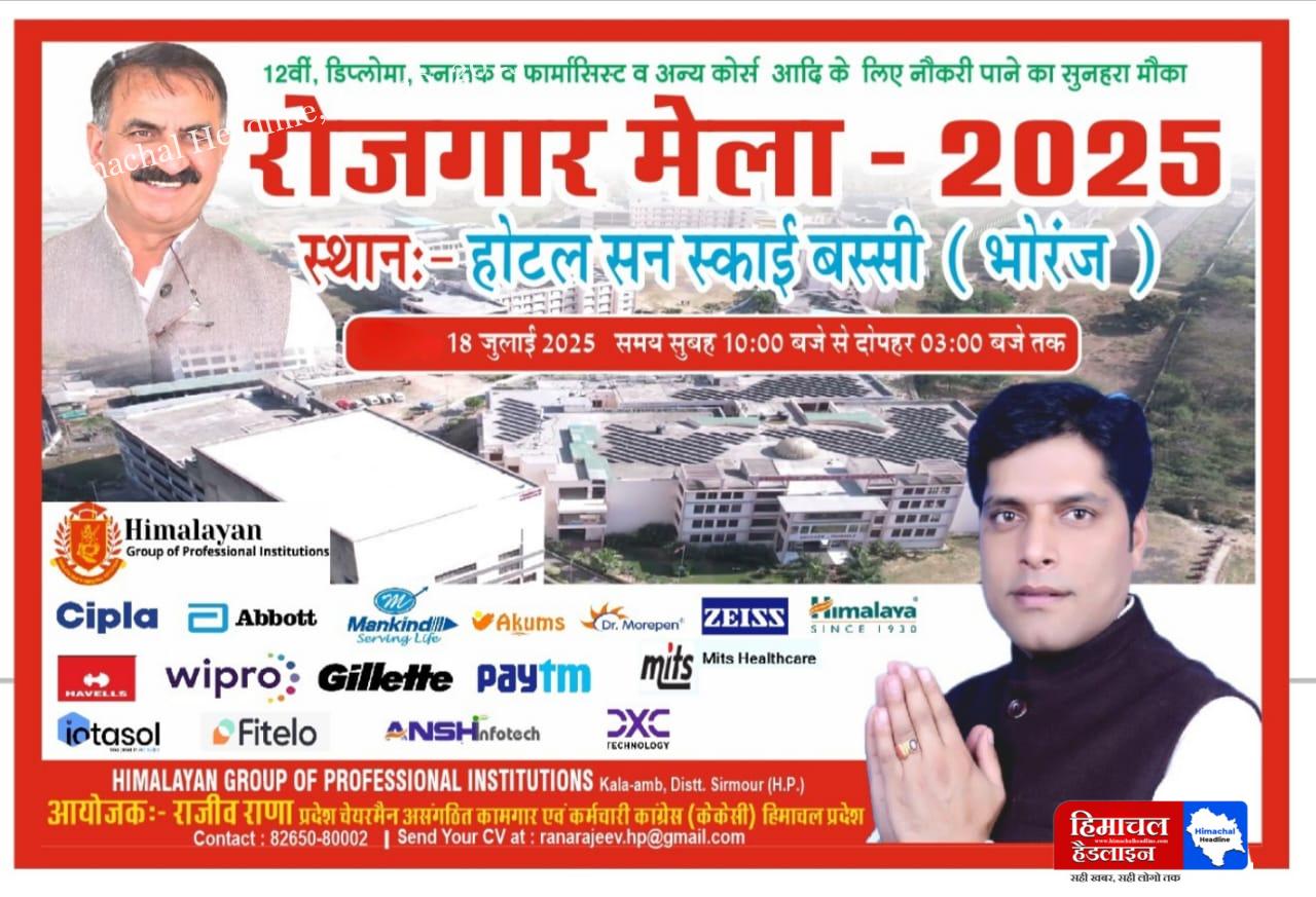 भोरंज में 18 जुलाई को रोजगार मेला, राजीव राणा की पहल पर कई नामी कंपनियाँ करेंगी सीधी भर्ती