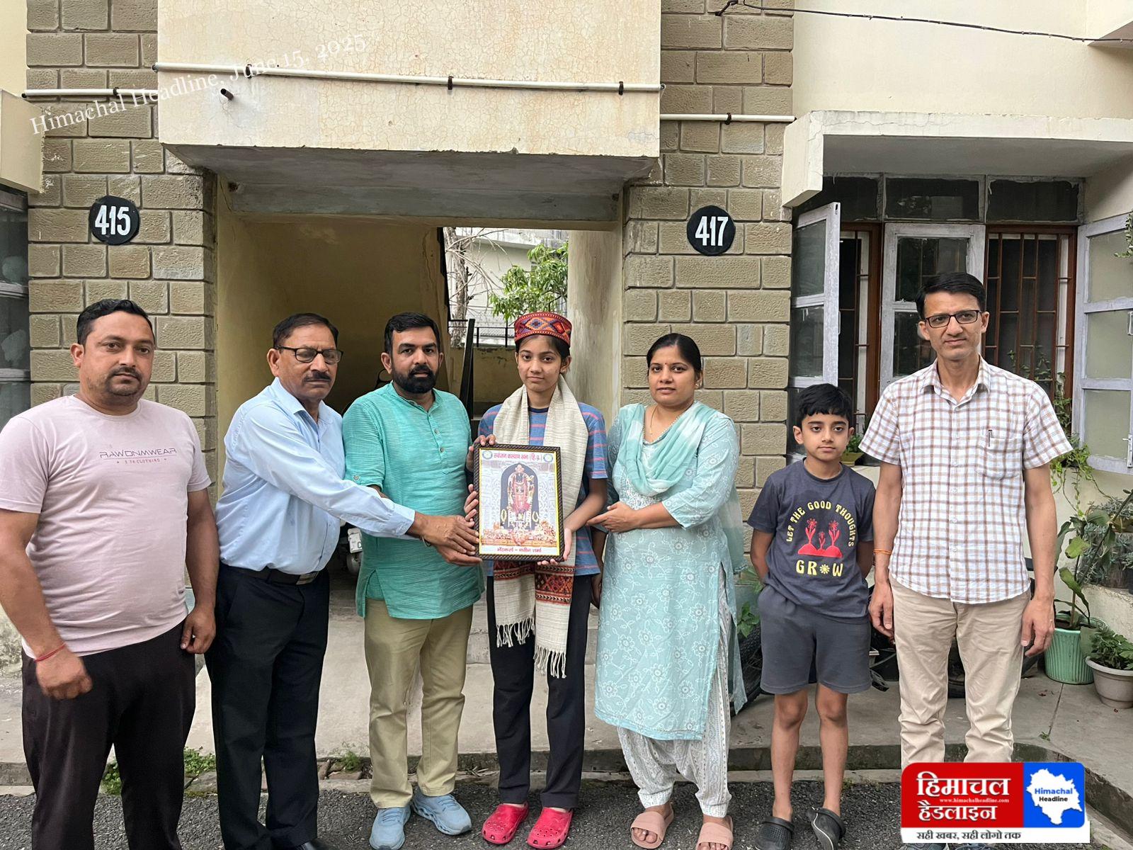 नवीन शर्मा ने गार्गी ठाकुर को दसवीं कक्षा में प्रदेश में पांचवा स्थान प्राप्त करने पर सम्मानित किया ।
