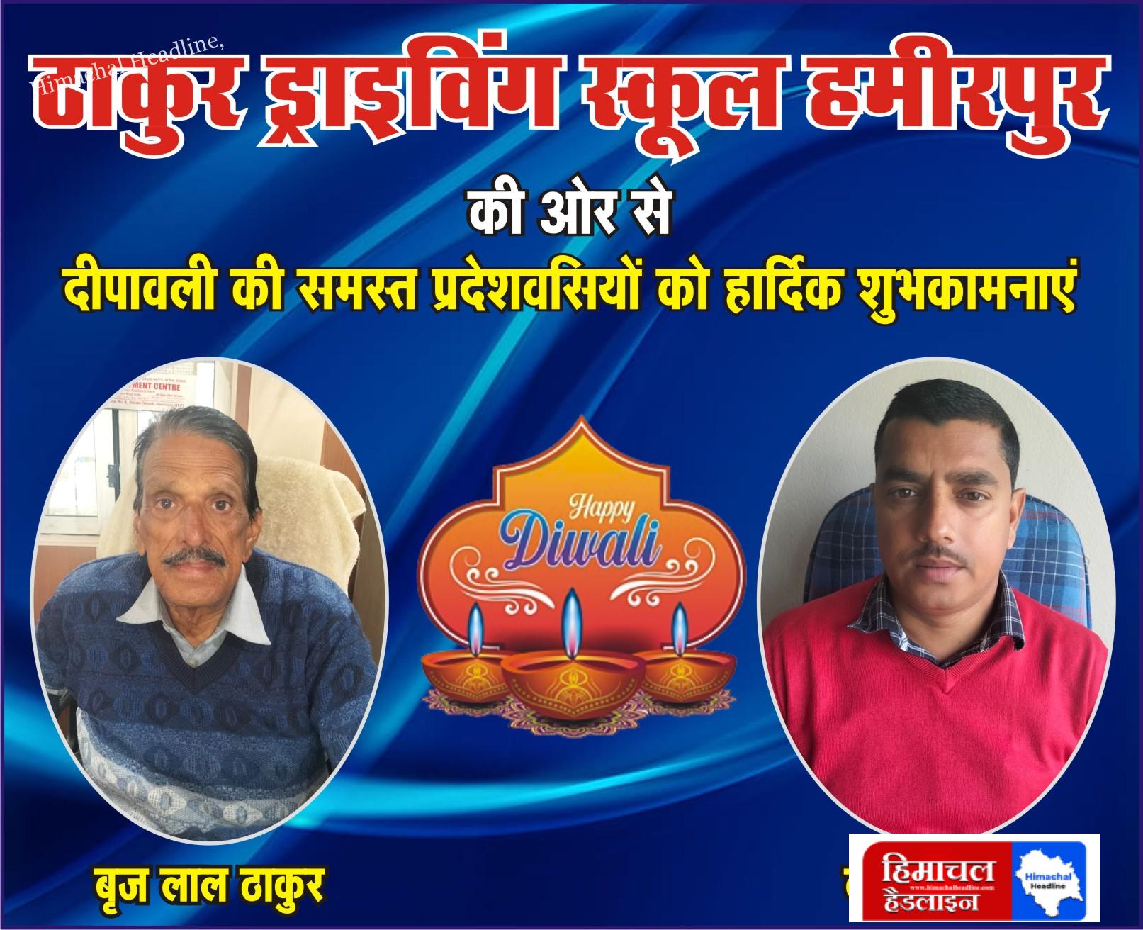 ठाकुर ड्राइविंग स्कूल हमीरपुर की ओर से समस्त जिला वासियों को दीपावली की हार्दिक शुभकामनाएं! 🌟✨