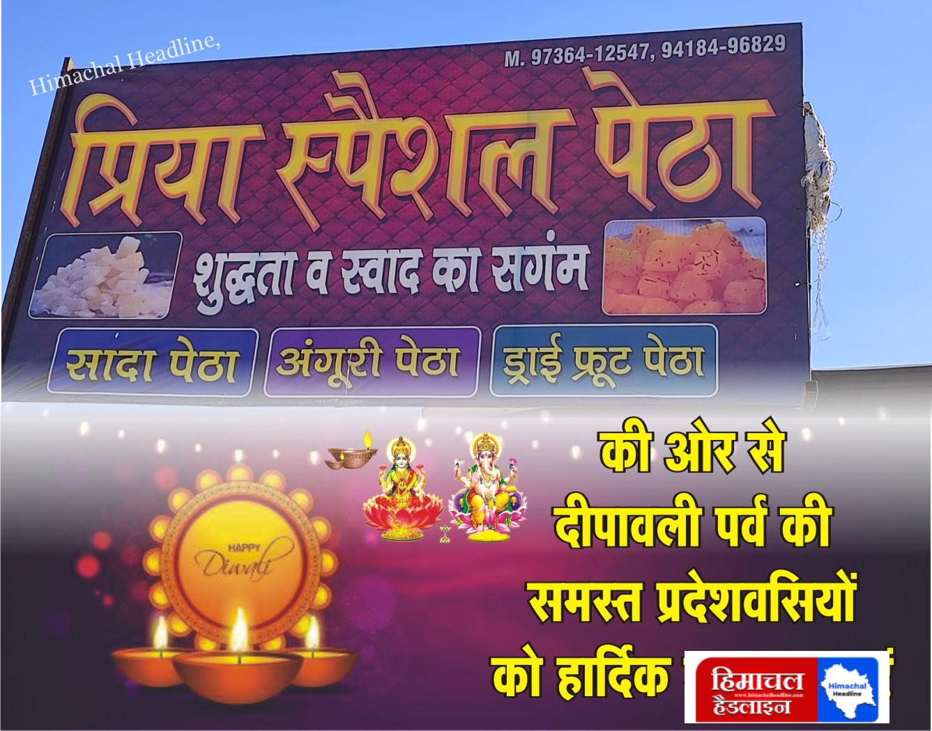 प्रिया पेठा हमीरपुर की ओर से समस्त प्रदेशवासियों को दीपावली की हार्दिक शुभकामनाएं! 🌟✨