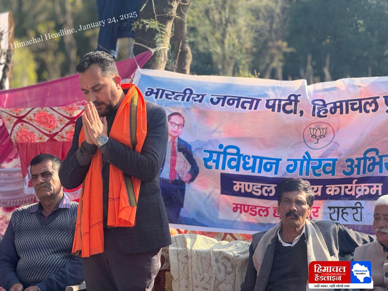 भारतीय जनता पार्टी की ओर से देशभर में चल रहे संविधान गौरव अभियान के तहत हमीरपुर विधानसभा क्षेत्र के दोनों मंडलों में कार्यक्रमों का आयोजन शुक्रवार को किया गया।