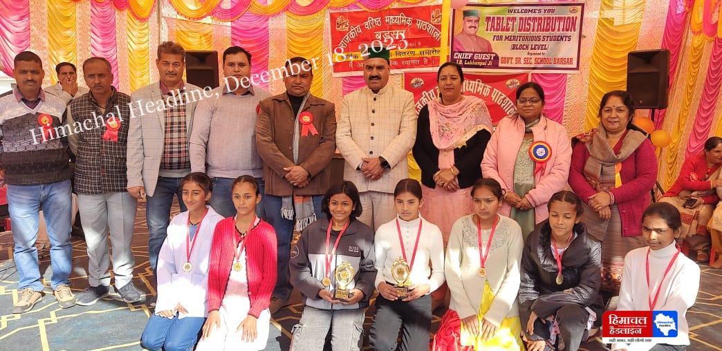 इंद्र दत्त लखनपाल ने बड़सर में मेधावी विद्यार्थियों को बांटे टैब सीनियर सेकेंडरी स्कूल बड़सर के वार्षिक पारितोषिक वितरण समारोह में भी लिया भाग