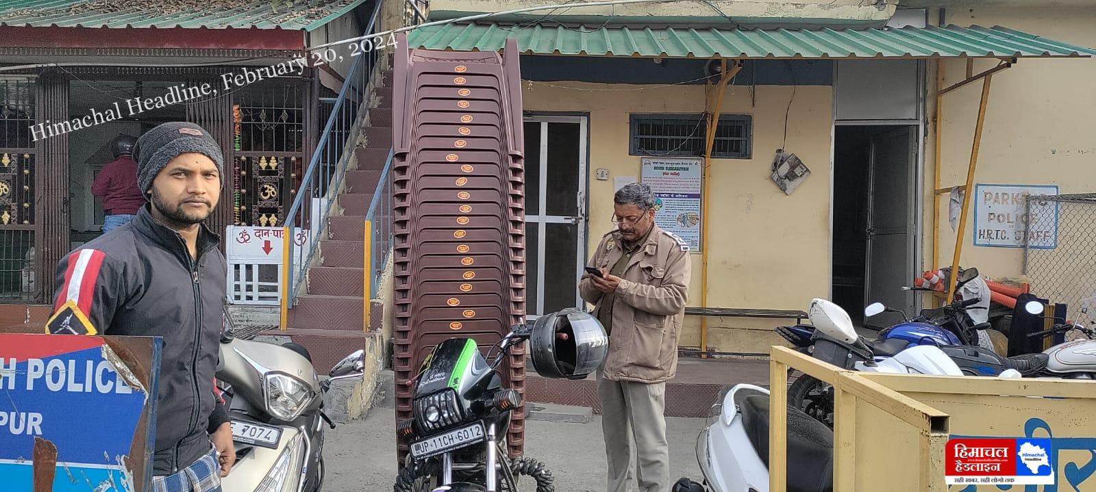 जिला हमीरपुर में मोटरसाइकिल पर प्लास्टिक कुर्सियां ढोने पर ढाई हजार का चालान,