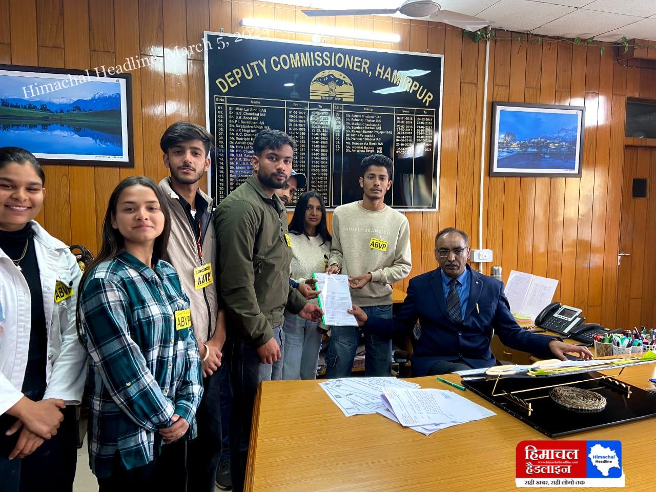 उपायुक्त हमीरपुर के माध्यम से विद्यार्थी परिषद ने दिया राष्ट्रपति को ज्ञापन