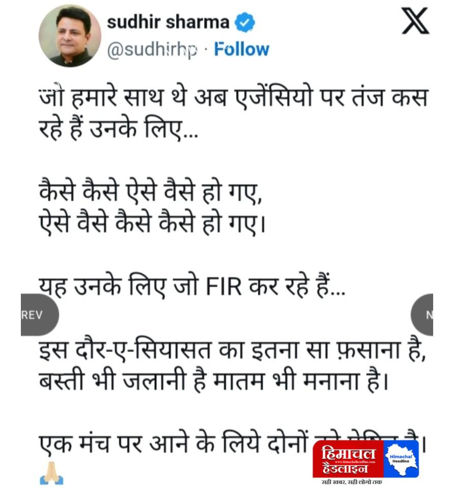 पूरी दुनिया में सबसे ज्यादा सियासत का बुखार हिमाचल प्रदेश में सब से आगे चल रहा है आए दिन कुछ ना कुछ देखने को मिल रहा है