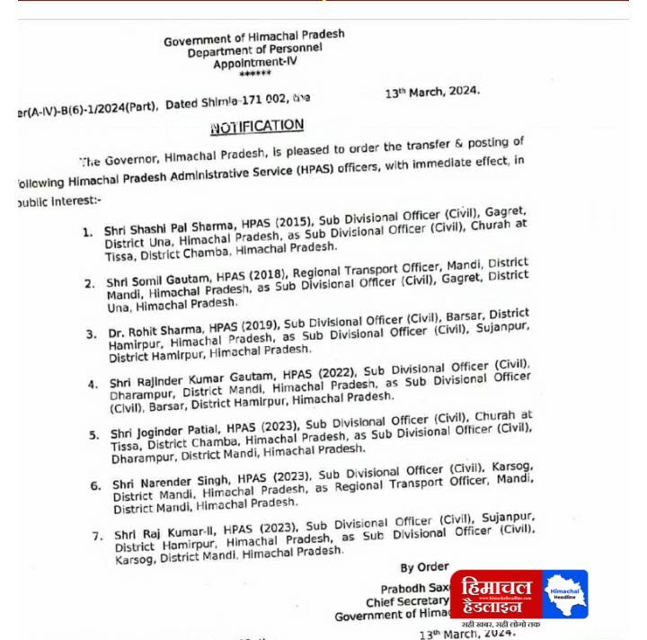 लोकसभा चुनाव से ठीक पहले उप मंडल अधिकारियों के फ़ेर बदल शुरू हो गए हैं himachalheadline March 14, 2024 3:14 am Read More »