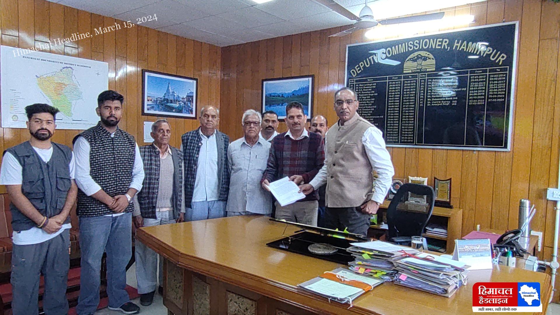 स्टोन क्रेशर लगने के विरोध में जंगल रोपा पंचायत का एक प्रतिनिधिमंडल उपायुक्त हमीरपुर अमरजीत सिंह से मिला।