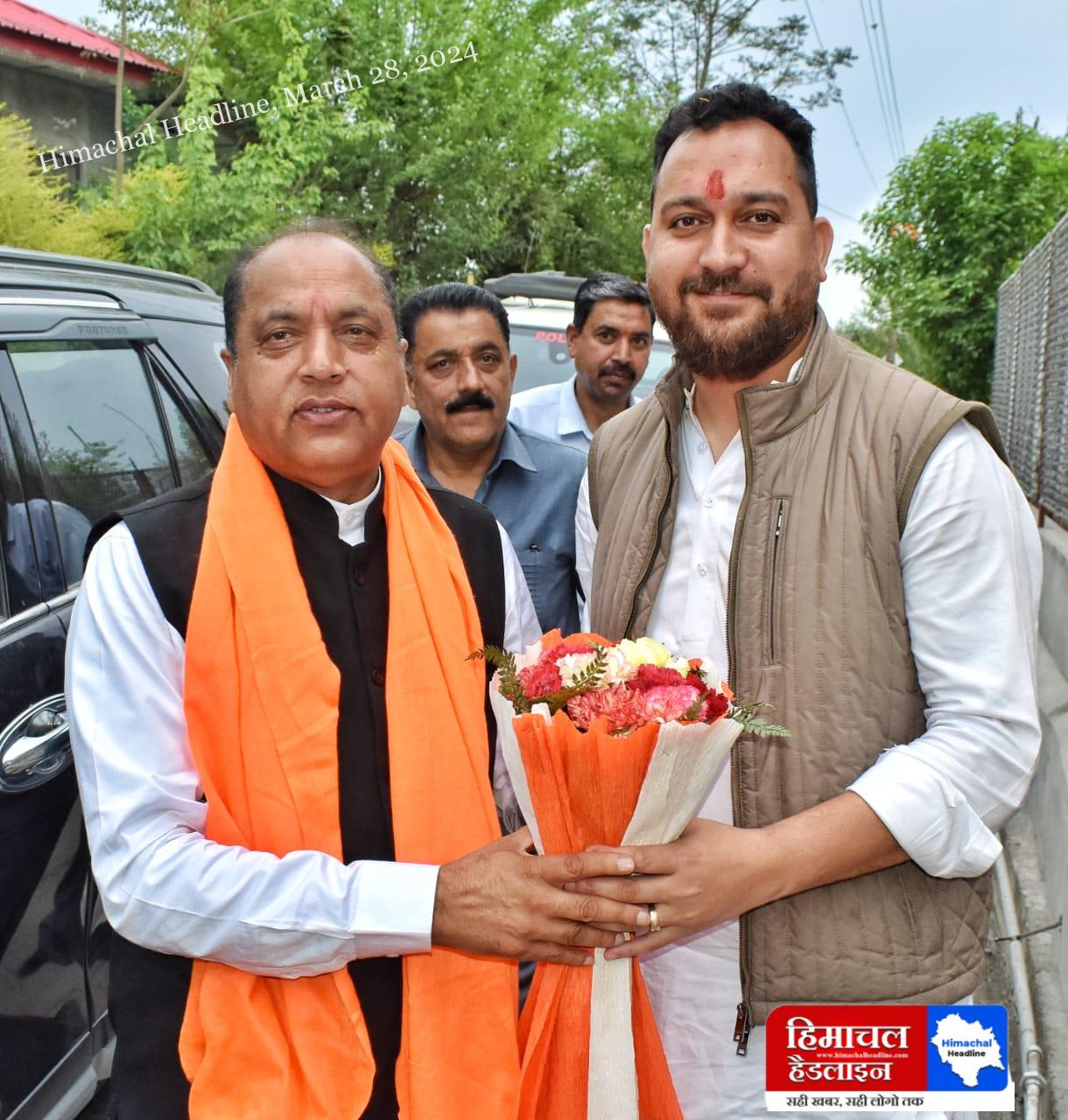 पूर्व मुख्यमंत्री जयराम ठाकुर एवं नेता प्रतिपक्ष आज हमीरपुर में विधायक आशीष शर्मा के घर पहुंचे