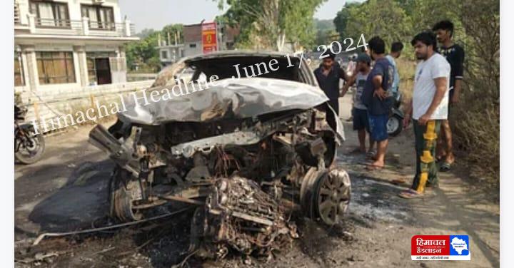 हमीरपुर मे नादौन में ब्यास पुल के पास बड़ा हादसा, पैरापिट से टकराने पर कार में लगी भीषण आग