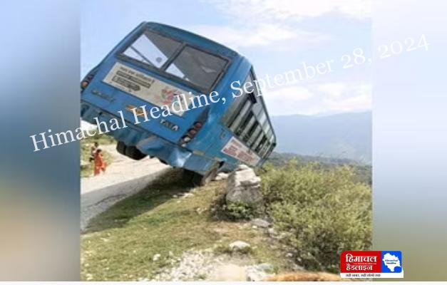 रामपुर बुशहर रायशरन में अनियंत्रित होकर हवा में लटकी HRTC की बस, बाल-बाल बचे 18 यात्री