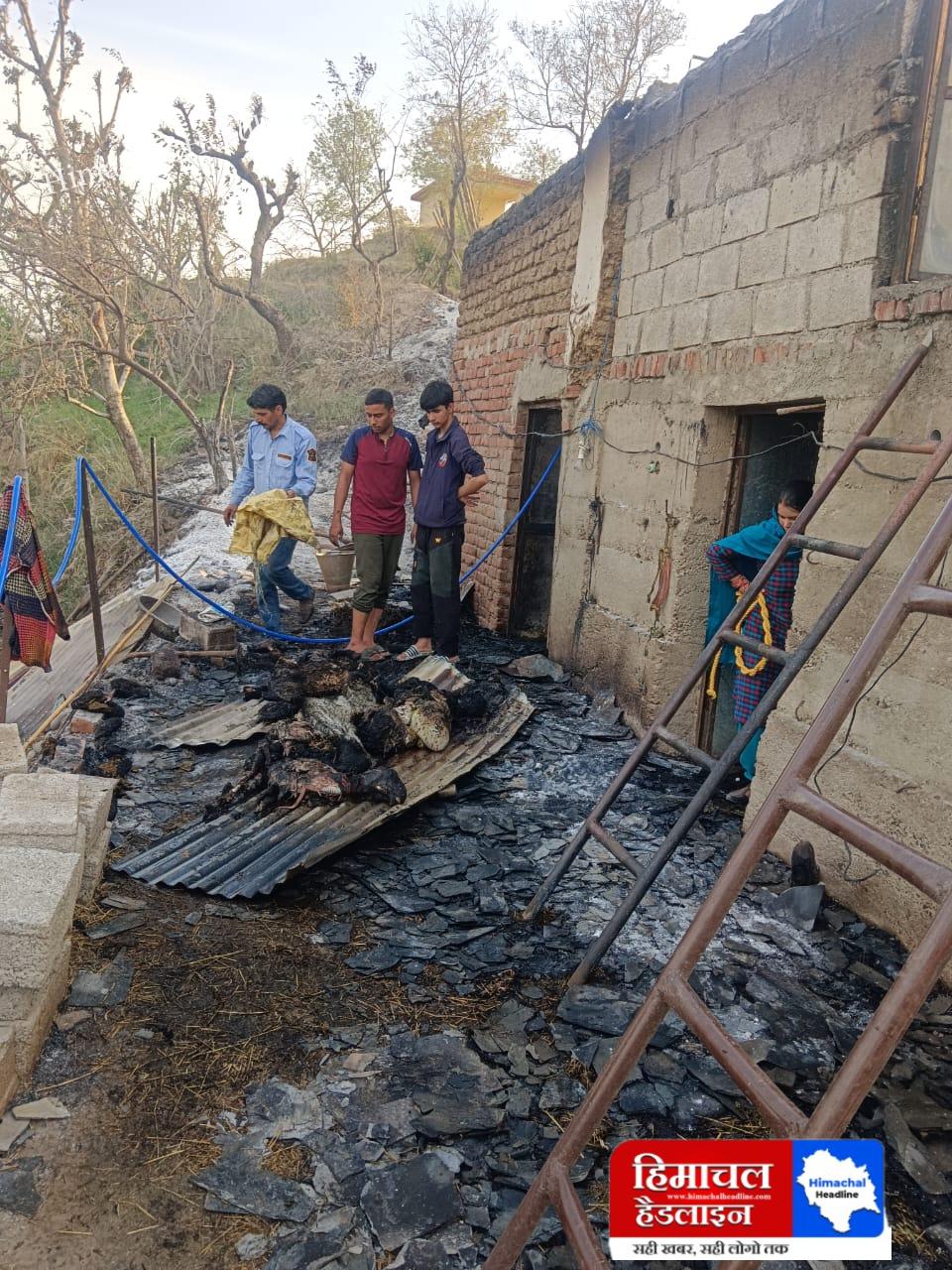 टौणी देवी तहसील के गब्बा गांव में आग लगने से 6 भेड़ बकरियां जिंदा जली, दो भैंसें, दो कटड़े व एक भेड़ बचाई