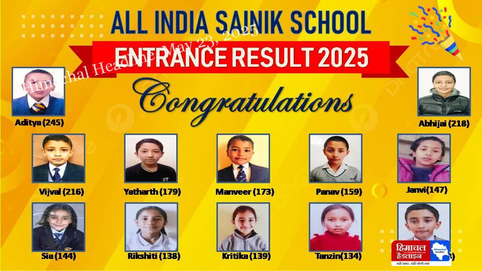 अरनव सात्विक विधामन्दिर शिमला के छात्रों ने सैनिक स्कूल परीक्षा 2025 में किया शानदार प्रदर्शन