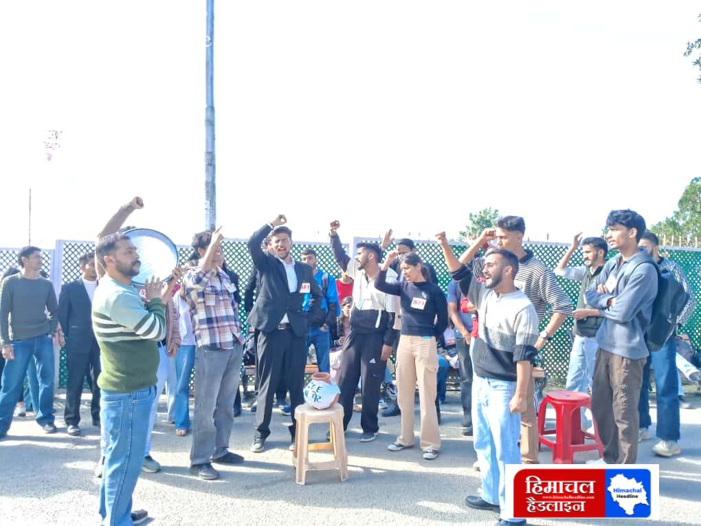 परीक्षाओं में हो रही धांधली को लेकर एस एफ आई का धरना प्रदर्शन